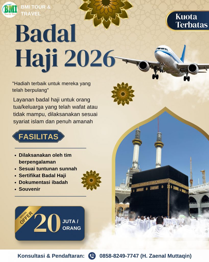 Dengan hadirnya program Badal Haji 2026 ini, BMI Tour & Travel semakin memperkuat perannya sebagai mitra perjalanan ibadah yang tidak hanya profesional, tetapi juga mengedepankan nilai syariah dan kemanusiaan.