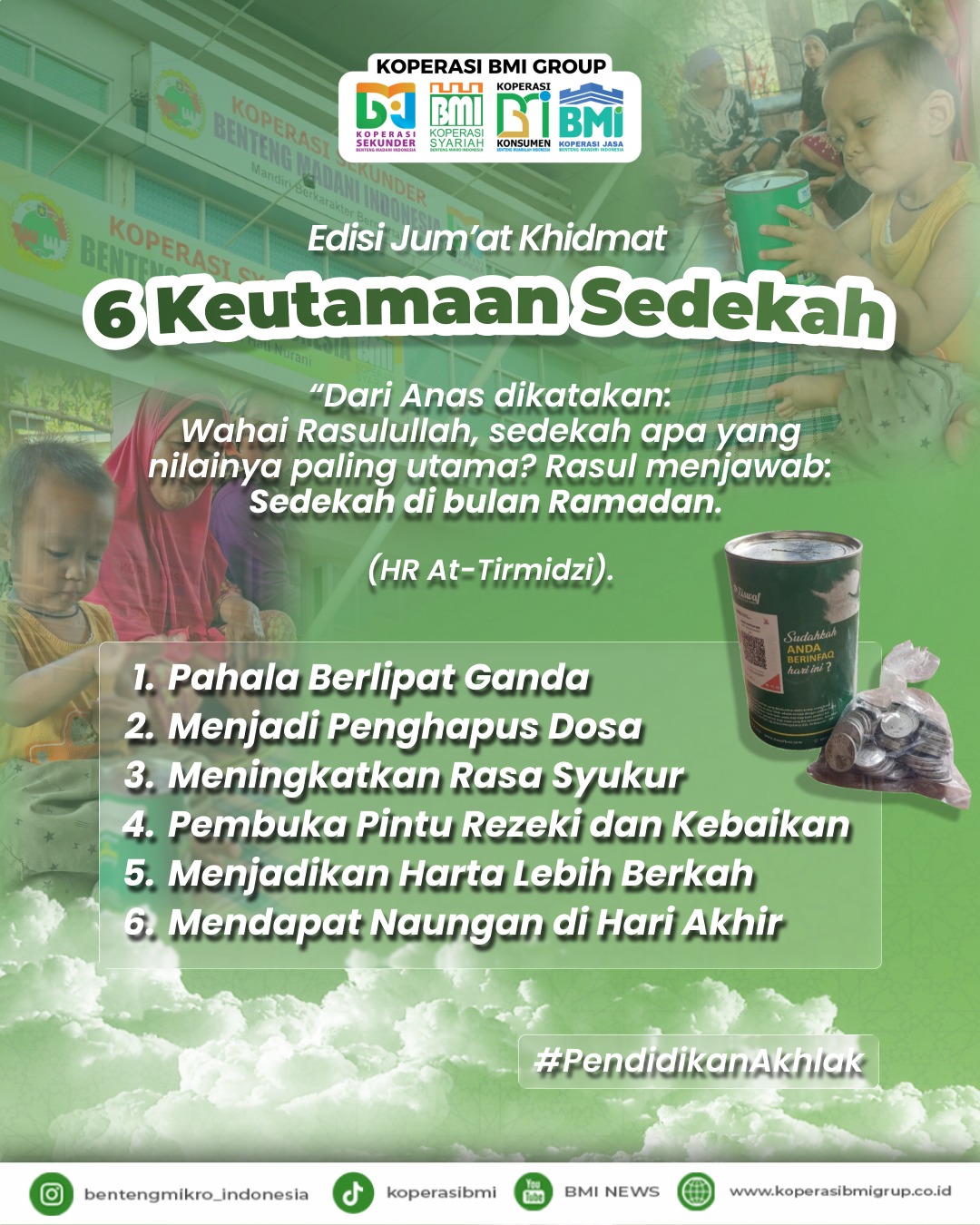 Tangerang, Klikbmi.com: Bulan Ramadan bukan hanya momentum menahan lapar dan dahaga, tetapi juga bulan terbaik untuk memperbanyak amal kebajikan. Di antara amalan yang sangat dianjurkan adalah sedekah, ibadah sosial yang dicintai Allah SWT dan dicontohkan langsung oleh Rasulullah SAW.