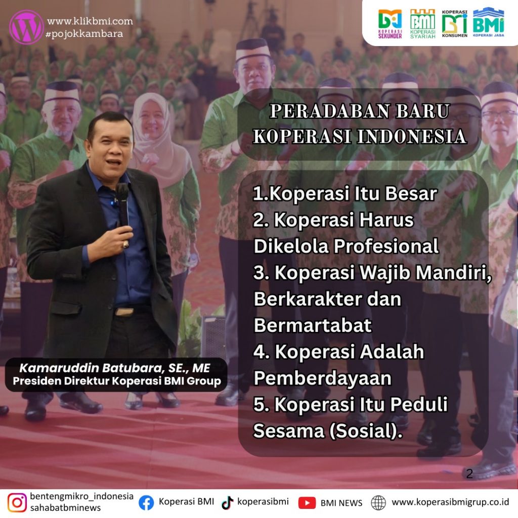 Konsep “Membumikan Peradaban Baru Koperasi Indonesia” juga menjadi tema utama dalam Rapat Anggota Tahunan (RAT) Tahun Buku 2021 Koperasi BMI Group, yang menandai tekad bersama dalam merealisasikan koperasi sebagai pilar utama ekonomi nasional.